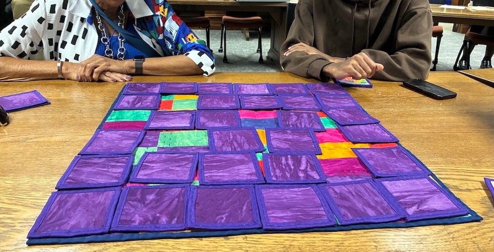 What the America250KY award did for me was critically important in this project. It required me to share my work. Not to only make my art in a silo, but to make my art accessible and playable in my community. And over three different events, I was able to engage alumni, community members, students, and educators in game playing sessions at the archive. My quilted games and guidebooks were becoming those doorways and pathways for others.