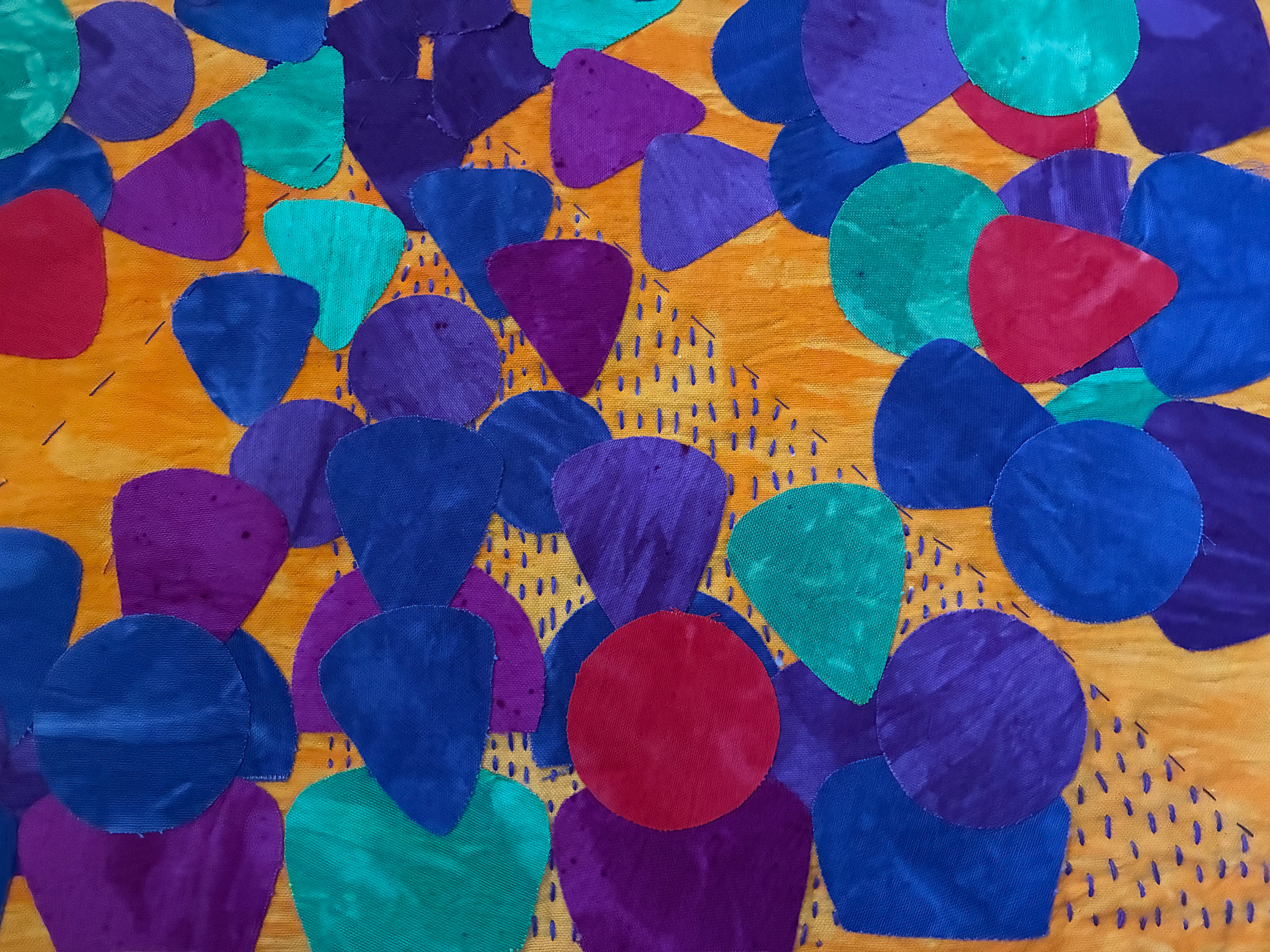 The first works I made were abstract quilt sketches, small-medium quilts (24 x 24 in) that represented the three figures: a classroom for Hooks in geometric formation, an elevation view of rural mapping for Laine, and words from Woodson’s publications configured in a spiral. I dyed fabric by hand, cut out and applied my hand drawn shapes and letters, and let the sketches move me toward visually communicating what I was uncovering in the archives.